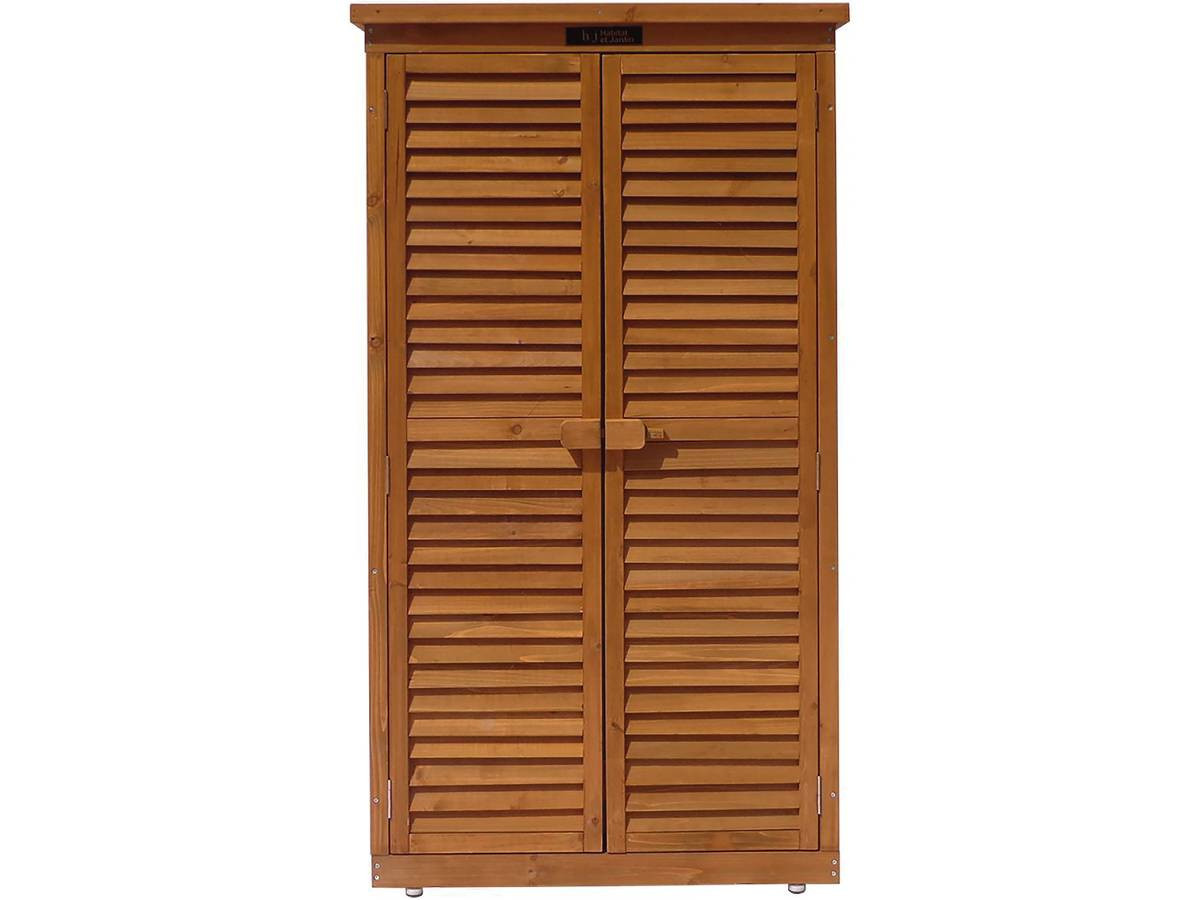 Descriptif :- Un meuble de rangement pour jardin, terrasse et balcon - Construit en bois de sapin - 2 larges étagères - Grand espace de rangement - Double porte type persienne - Ventilation - Verrouillable
