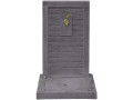 Elle est composée d'un réceptacle avec trou d'évacuation et d'un fronton se trouvant à 57 cm du sol.