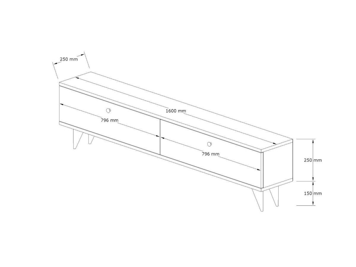 Meuble TV "Paris" Noyer Bois 160 x 25 x 40 cm, Mélamine, Classique, Bas à poser, rectangulaire.