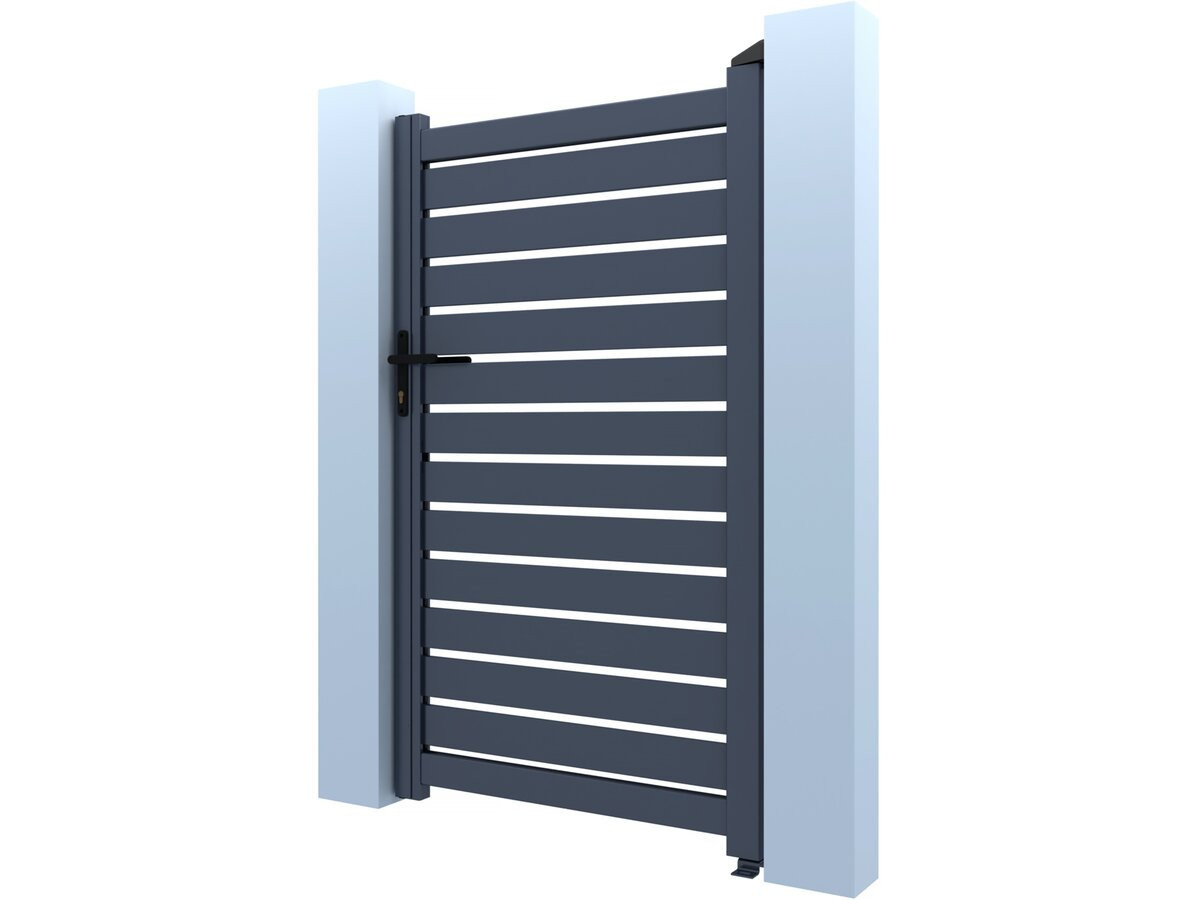 Descriptif :Portillon semi-ajouré Matthieu - Dimensions : 100 x 140 cm - Type d'ouverture : battant - Aluminium - Gris