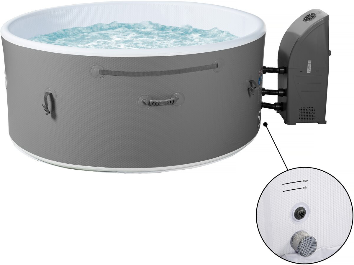 Descriptif :Spa Venise - Dimensions: 165 cm de diamètre et 65 cm d'hauteur - Système de chauffage : 20 à 40 °C - 130 jets d'eau - Matière : PVC - Poids : 30,45 kg - Blanc/Gris